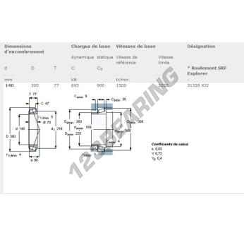 Het Kegellager, bekend als het 31328XJ2-SKF SKF, heeft een binnendiameter van 140 mm, een buitendiameter van 300 mm en een dikte van 77 mm.
