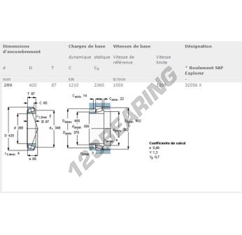 Het Kegellager, bekend als het 32056-X-SKF SKF, heeft een binnendiameter van 280 mm, een buitendiameter van 420 mm en een dikte van 87 mm.