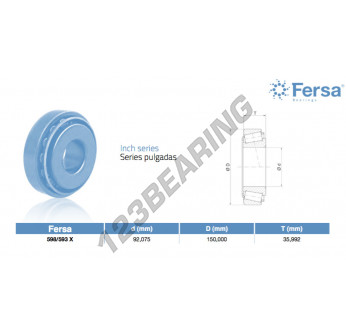 Het Kegellager, bekend als het 598-593X-ASFERSA ASFERSA, heeft een binnendiameter van 92.075 mm, een buitendiameter van 150 mm en een dikte van 35.992 mm.