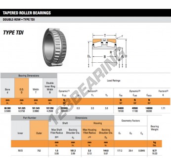 Het Kegellager, bekend als het 767D-752-TIMKEN TIMKEN, heeft een binnendiameter van 88.9 mm, een buitendiameter van 161.925 mm en een dikte van 101.549 mm.