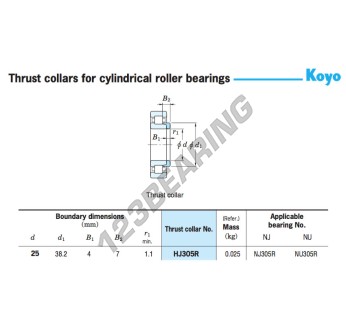 Het Rollager, bekend als het HJ305R-JTEKT JTEKT, heeft een binnendiameter van 25 mm, een buitendiameter van 38.2 mm en een dikte van 4 mm.
