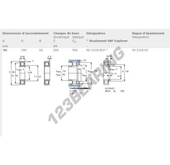 Het Rollager, bekend als het NU2318-ECP-SKF SKF, heeft een binnendiameter van 90 mm, een buitendiameter van 190 mm en een dikte van 64 mm.