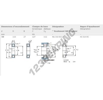 Het Rollager, bekend als het NU310-ECJ-SKF SKF, heeft een binnendiameter van 50 mm, een buitendiameter van 110 mm en een dikte van 27 mm.