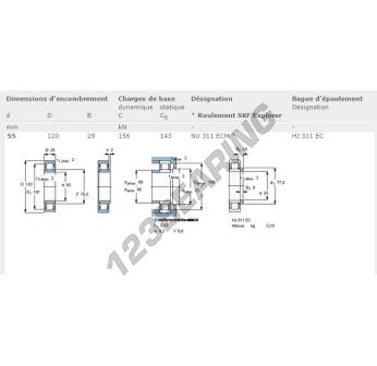 Het Rollager, bekend als het NU311-ECM-SKF SKF, heeft een binnendiameter van 55 mm, een buitendiameter van 120 mm en een dikte van 29 mm.