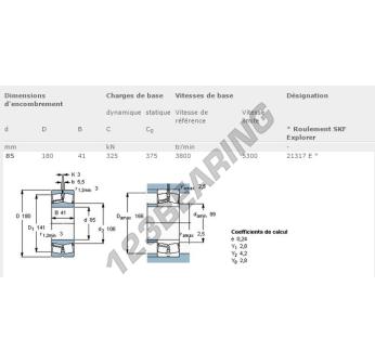 Het Sferische Rollagers, bekend als het 21317-E-SKF SKF, heeft een binnendiameter van 85 mm, een buitendiameter van 180 mm en een dikte van 41 mm.