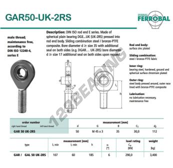 Het Ge Gewrichtslager bekend als DGAR50-UK-2RS-DURBAL heeft een interne diameter van 50 mm, een externe diameter van 112 mm en een dikte van 35 mm.