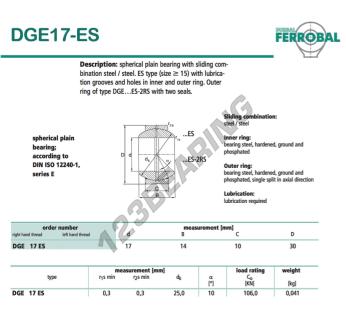 Het Ge Gewrichtslager bekend als DGE17-ES-DURBAL heeft een interne diameter van 17 mm, een externe diameter van 30 mm en een dikte van 10 mm.