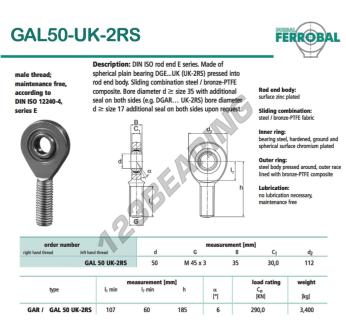 Verwijzing : GAL50-UK-2RS-DURBAL