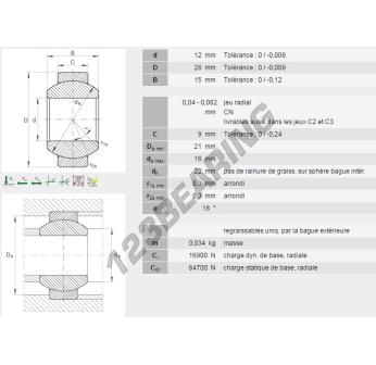 Het Ge Gewrichtslager bekend als GE12-FO-INA heeft een interne diameter van 12 mm, een externe diameter van 26 mm en een dikte van 15 mm.