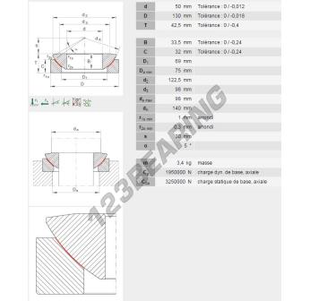 Het Ge Gewrichtslager bekend als GE50AW-INA heeft een interne diameter van 50 mm, een externe diameter van 130 mm en een dikte van 42.5 mm.