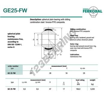 Het Geew Gewrichtslager bekend als GE25-FW-DURBAL DURBAL heeft een interne diameter van 25 mm, een externe diameter van 47 mm en een dikte van 18 mm.