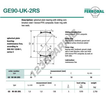 Het Geew Gewrichtslager bekend als GE90-UK-2RS-DURBAL DURBAL heeft een interne diameter van 90 mm, een externe diameter van 130 mm en een dikte van 50 mm.
