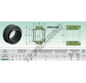 Het Geew Gewrichtslager bekend als GEEW080-ES Algemeen heeft een interne diameter van 80 mm, een externe diameter van 120 mm en een dikte van 80 mm.