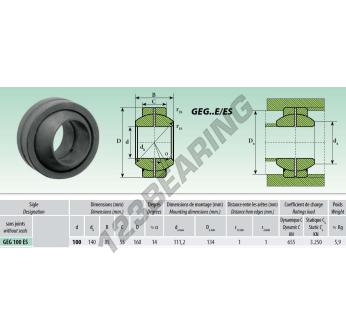 Het Geg Gewrichtslager bekend als GEG100-ES Algemeen heeft een interne diameter van 100 mm, een externe diameter van 160 mm en een dikte van 85 mm.