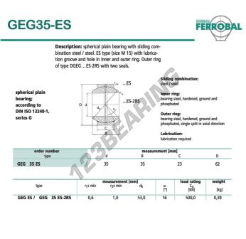 Het Geg Gewrichtslager bekend als GEG35-ES-DURBAL DURBAL heeft een interne diameter van 35 mm, een externe diameter van 62 mm en een dikte van 23 mm.