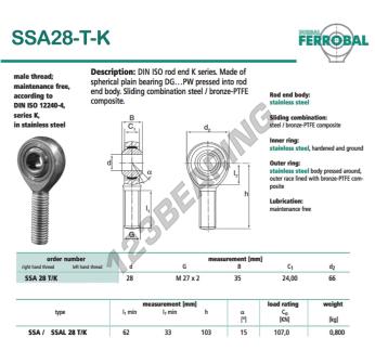Het Stangkop Sa bekend als SSA28-T-K-DURBAL DURBAL heeft een schroefsteek van , een binnendiameter van 28 mm, een buitendiameter van 66 mm en een dikte van 35 mm.